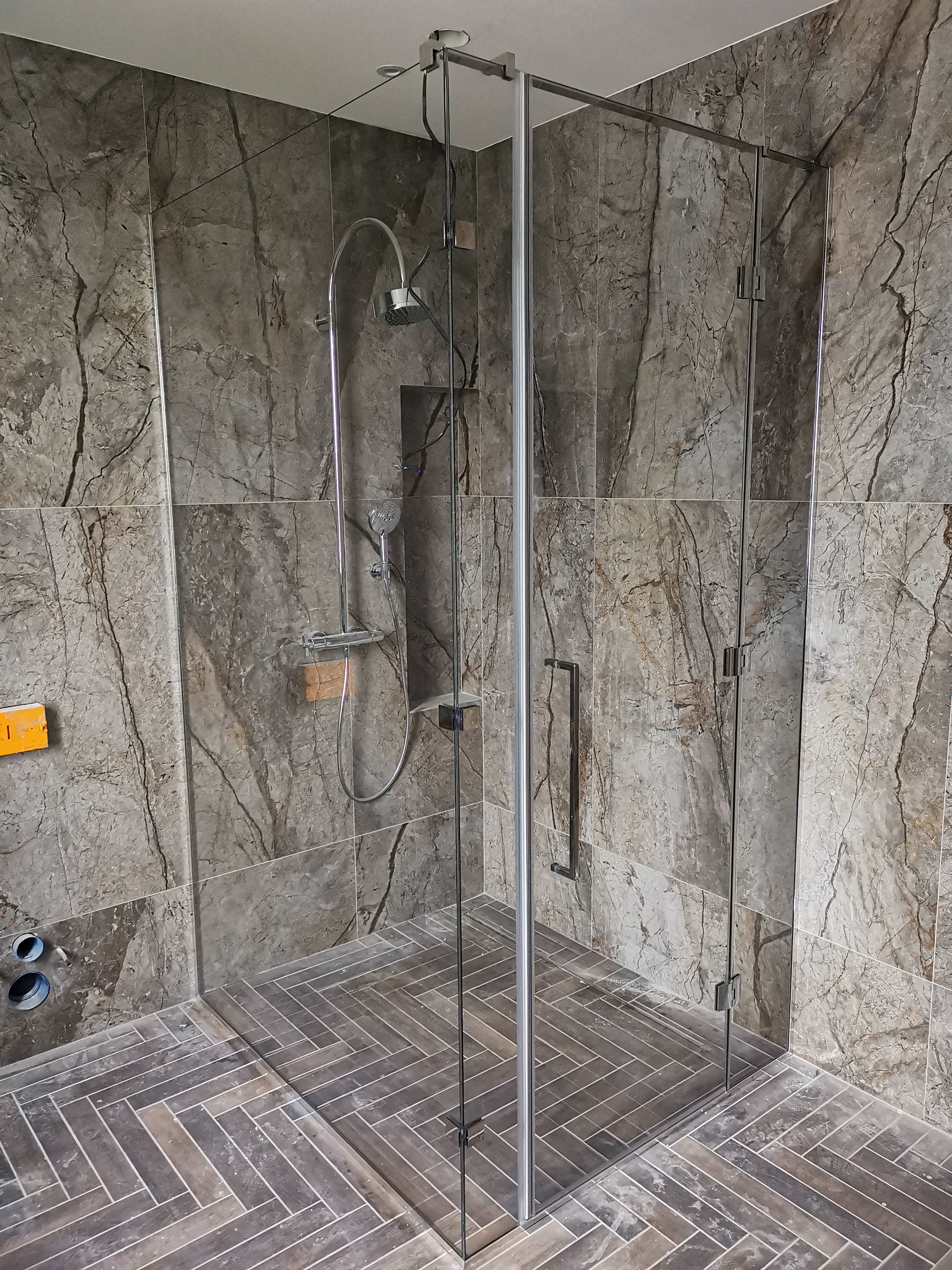 Stiklo dušo kabinos vizualiai išplečia vonios kambario erdvę ir suteikia lengvumo ir švarumo jausmą. Stiklo dušo kabinų gamybai naudojamas tik grūdintas stiklas, kuris užtikrina maksimalų saugumo lygį. Konstrukcijos yra labai įvairios – nuo paprastų stiklo durų iki daugiapakopių konstrukcijų.