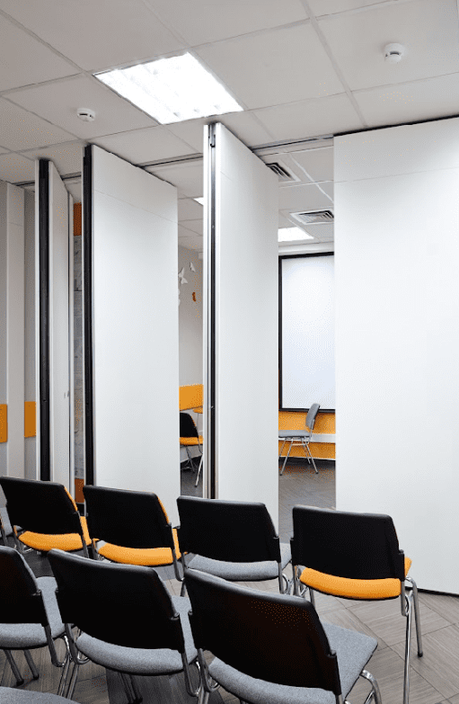 Mūsų įmonės siūlomų transformuojamų pertvarų pagalba galima lengvai valdyti biuro erdvę priklausomai nuo pageidaujamos paskirties, taip leidžiant maksimaliai racionaliai naudoti patalpas.